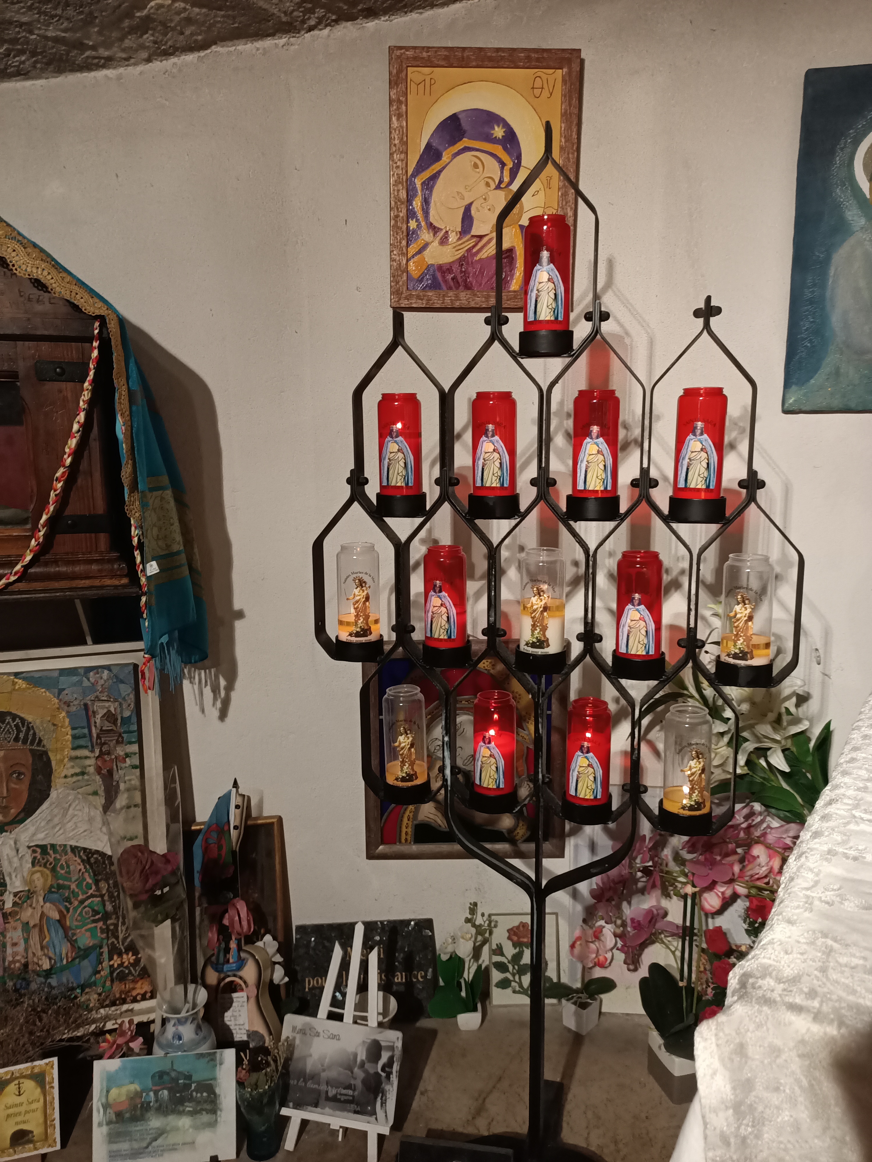 Si vous n'osez pas pénétré dans cette église vous vous ferez harponer par les gardiennes de Sainte Sara qui vous liront la bonne aventure dans les lignes de la mains et vous n'aurez plus qu'une obligation d'aller remercier Sara en la touchant et formulez vos vœux ( ainsi que cet argent en-volé dans le creux de votre main par les gardiennes,surtout n'oubliez pas de souffler dessus pour que multiplication s'en vienne 😉🙏) mais bon ça fait partie du folklore des vis et coutumes du lieux.... la crypte est étonnante,allez-y en soirée quand tout le brouhaha de l'extérieur vient vous inondé de paix à l'intérieur de l'édifice saint . Ressentez les Saintes femmes qui entourées Jésus qui vécurent ici ... sentiment de grâce.... amen 🙏🥰❤️🩹💖🙏