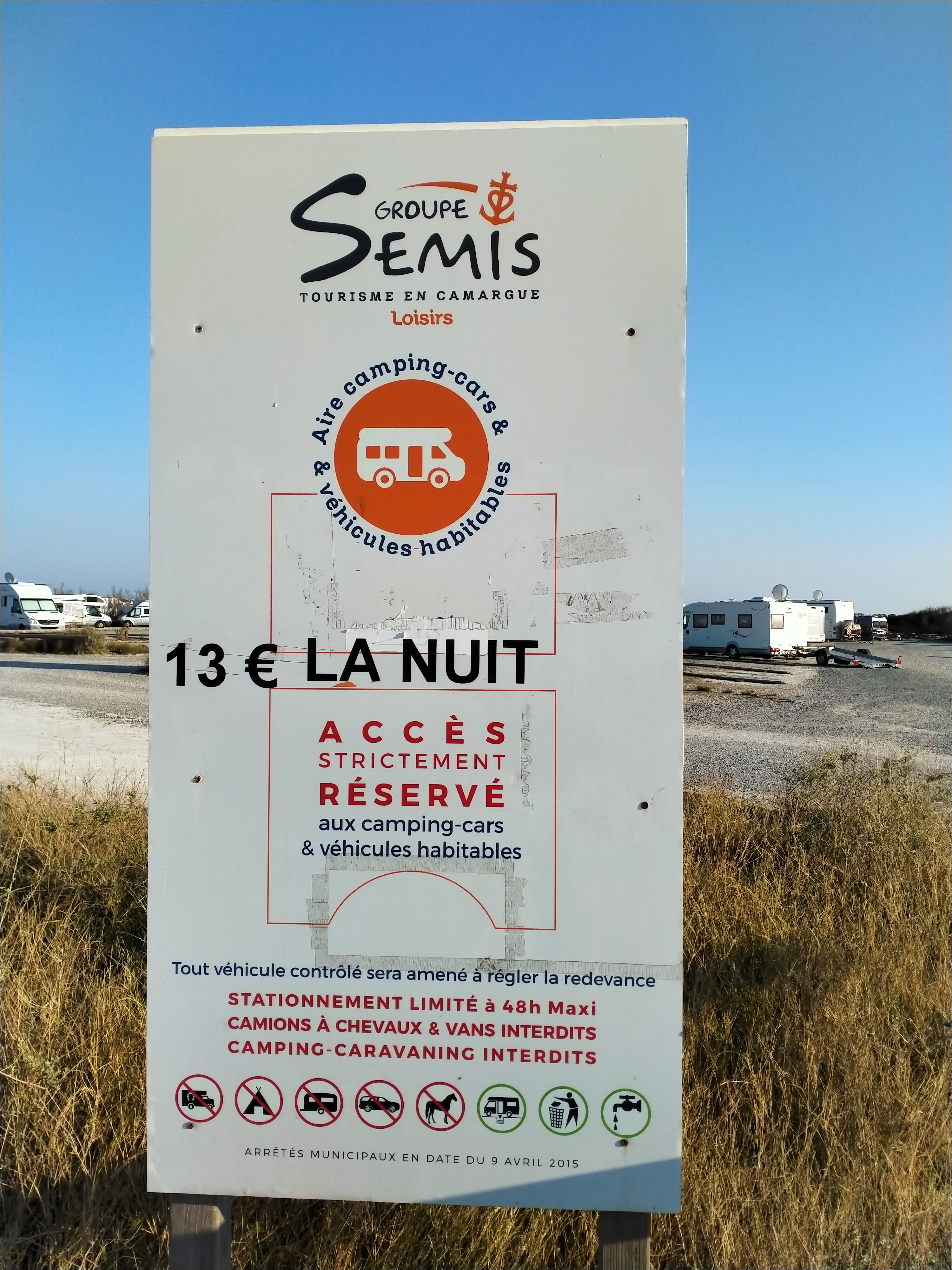 Toujours aussi beau aire camping car avant les saintes maries sans électricité mai eau de 8h à 17h30 vidage cassette eau grise eau potable